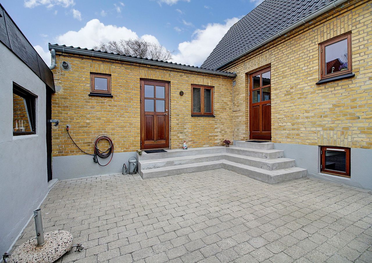 Flere dejlige afskærmede terrasser/gårdhaver, ligesom der er et godt udhus/værksted.