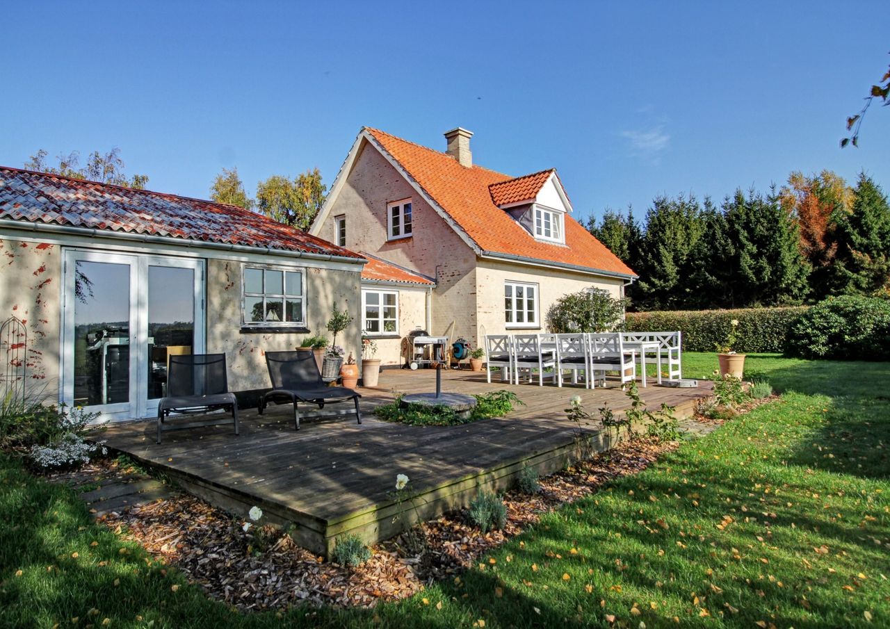 dejlig gård med masser af muligheder for at drive liberalt erhverv, og med uhindret udsigt over åbne