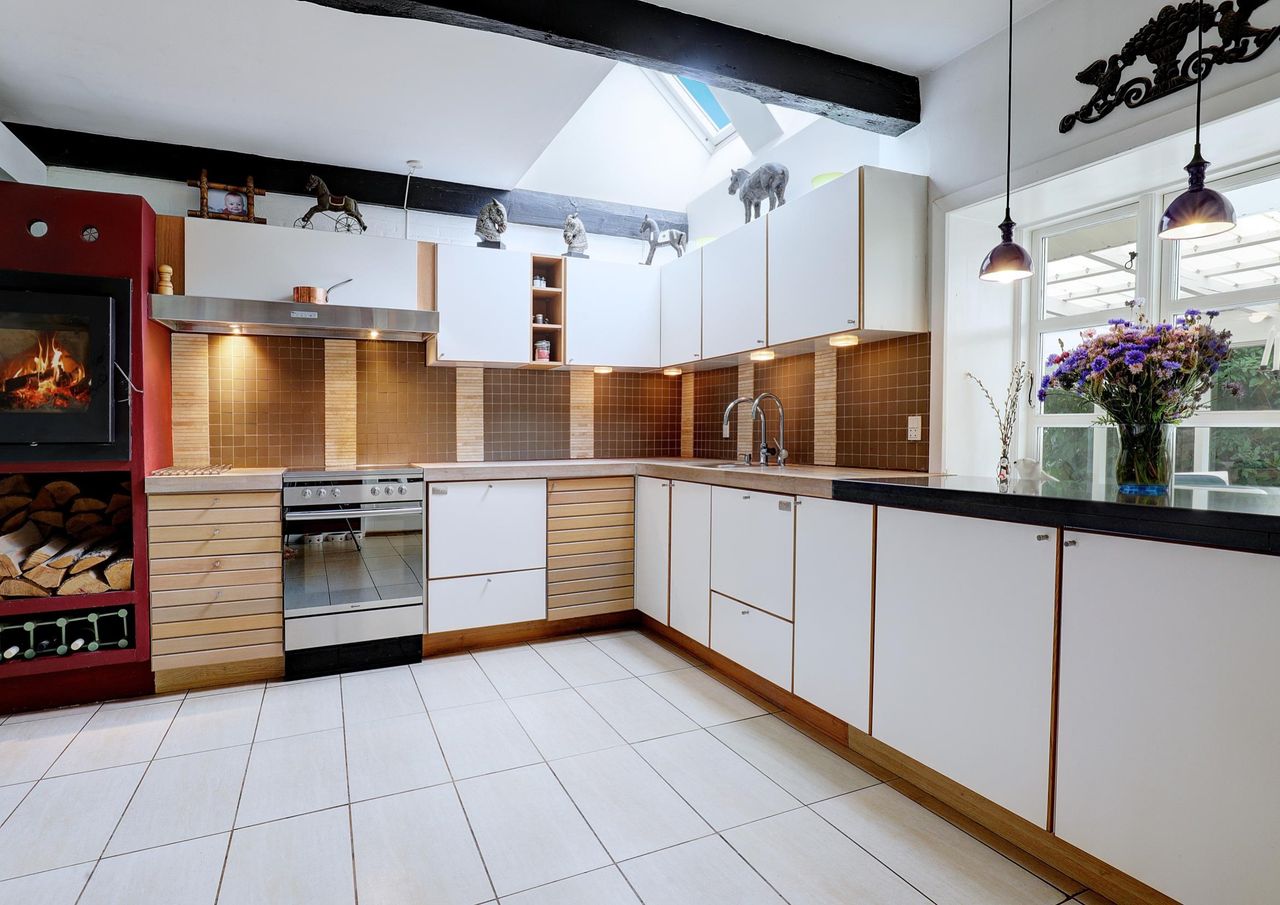 udgang til haven. I modsatte ende af stuehuset er der et dejligt badeværelse samt