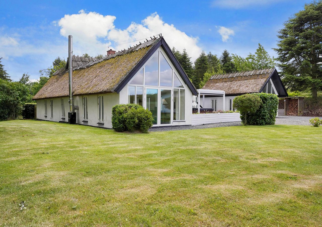 Hertil kommer et solcelleanlæg med 10 kWh batteri, som sikrer lavt energiforbrug og en flot energimærkning A2010 – en sjælden kombination for en landejendom i denne kaliber.